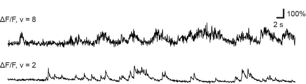 Many researchers, including myself, use calcium imaging to read out the activity of neurons in the living brain. This method relies on the fact an action potential – the “spike” of neuronal activity – opens voltage-gated calcium channels, transiently increasing the calcium concentration in the cell.