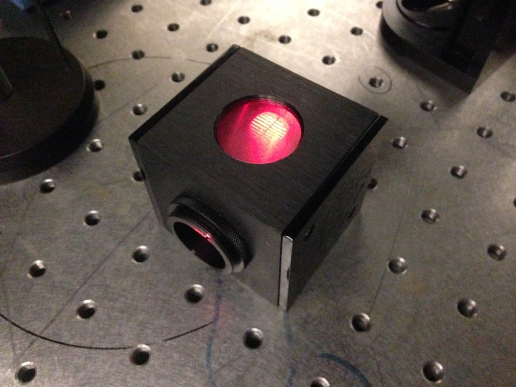 This alignment laser is basically a continuous wave-visible light laser that goes through a optical fiber and afterwards enters a beam coupler. I used a shearing interferometer (described above) to make sure that the outgoing beam was collimated, and then used the collimated beam for backward alignment.