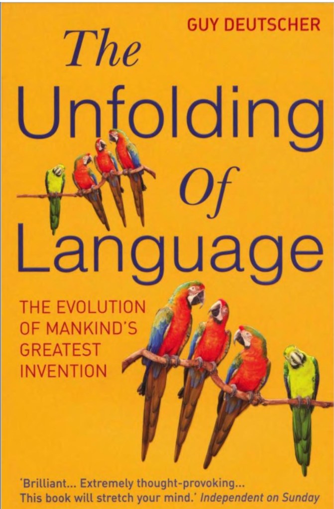 P.S. I’ve read the German version of Deutscher’s book. It is not simply a translation of the English version but provides many additional examples from the German language that enhance or replace the examples taken from English. This was done in an excellent manner, and I can only recommend to German-speaking readers of this blog to read the translation and not the original version.